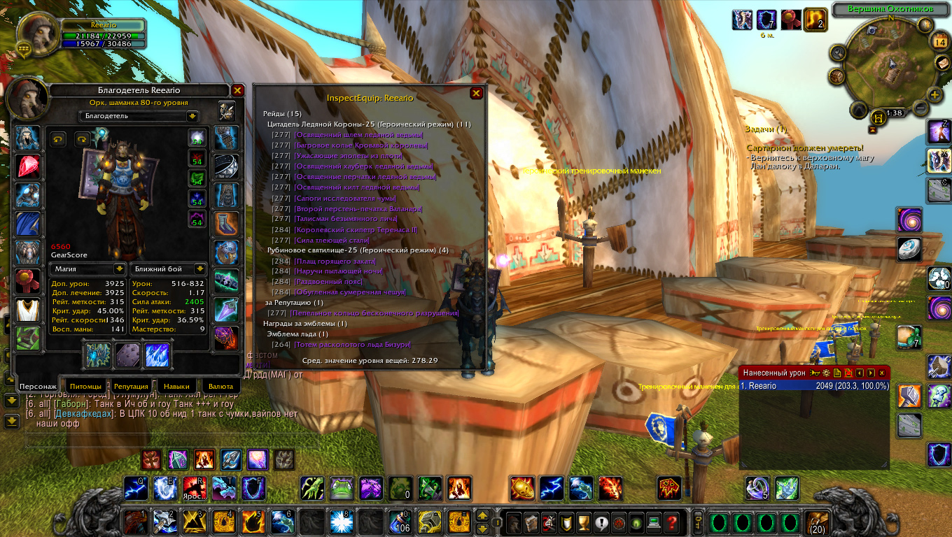 1. Reeario, шаман, орда: PVE - BIS рестор шаман 6592 гс (валанир), BIS элем 6560 гс, Бис энх (2 зова) 6568 гс. PVP - BIS рестор 6243 гс, элем 6325.