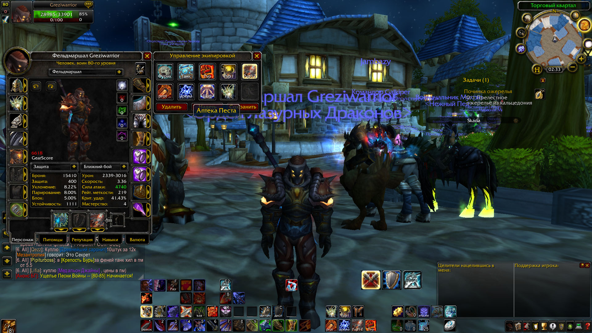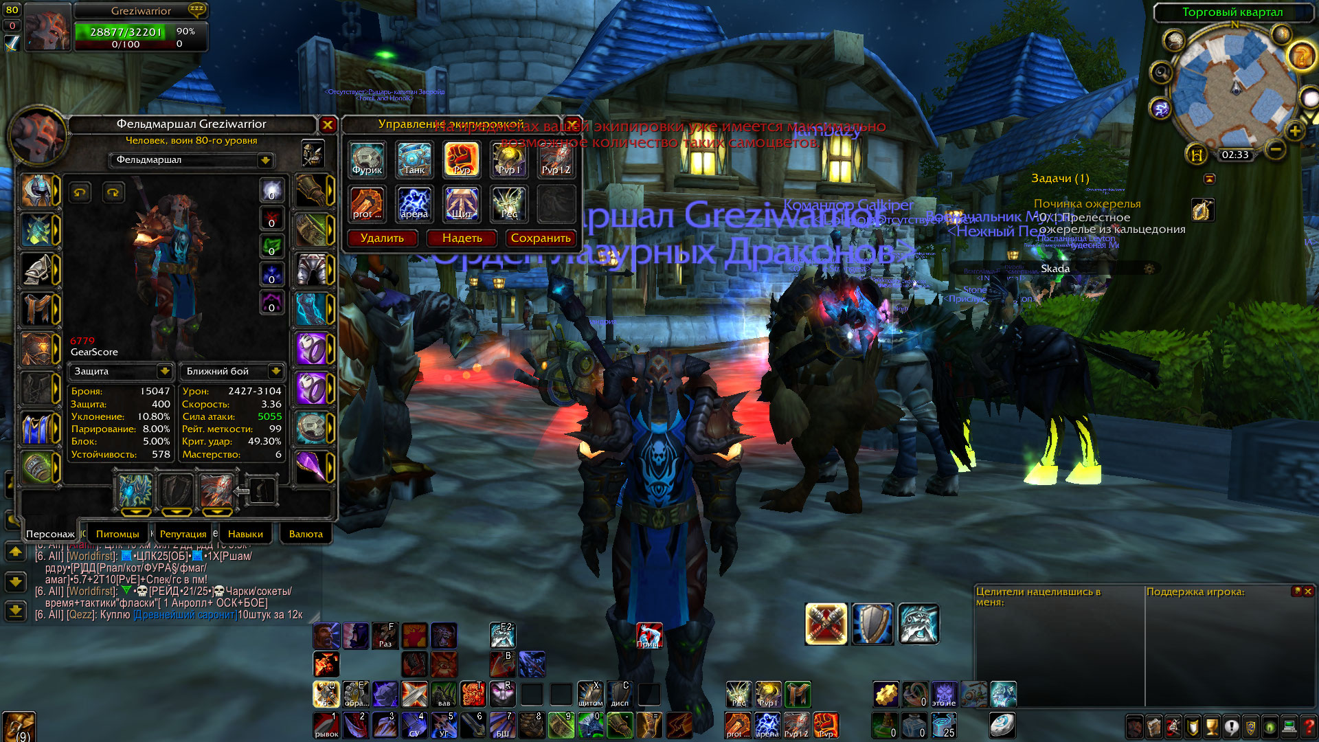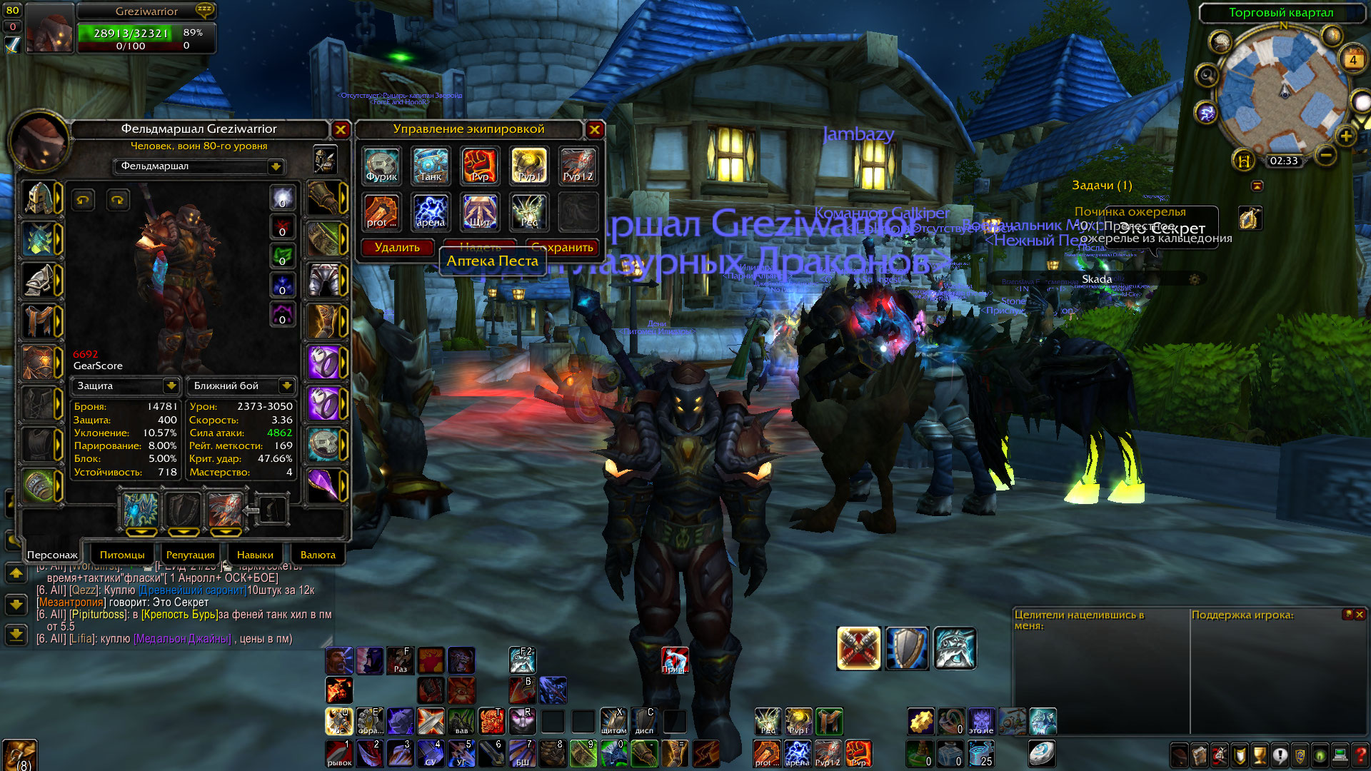 5) отличный вар, хороший выбор, Ювелирка, Инжа, трансмуть на складе, редкие маунты приз.тигр, мощ в пвп и пве. спеки видны на скринах