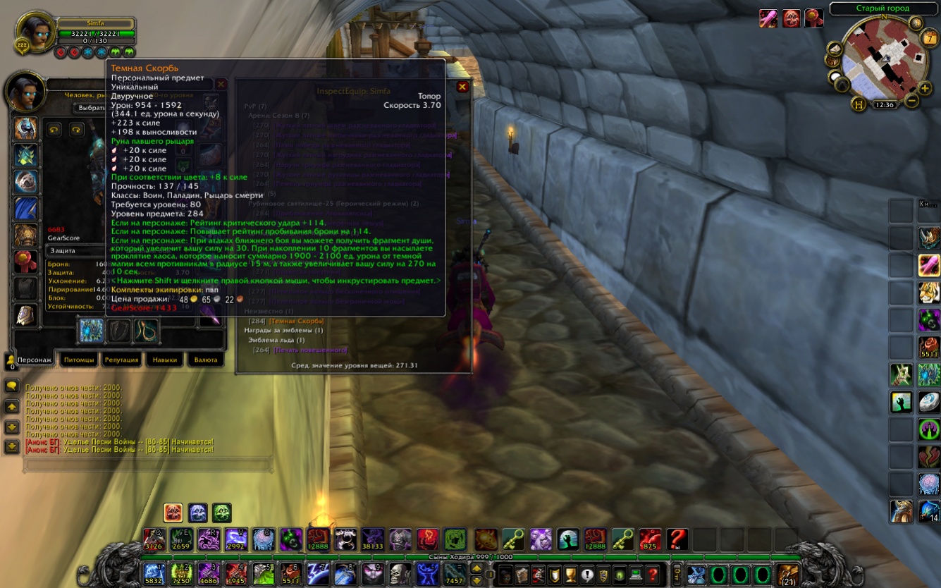 1) Дк, Альянс, ПвП Анхоли 6683 4/5 А8 кроме штанов, ПвЕ танк 6283