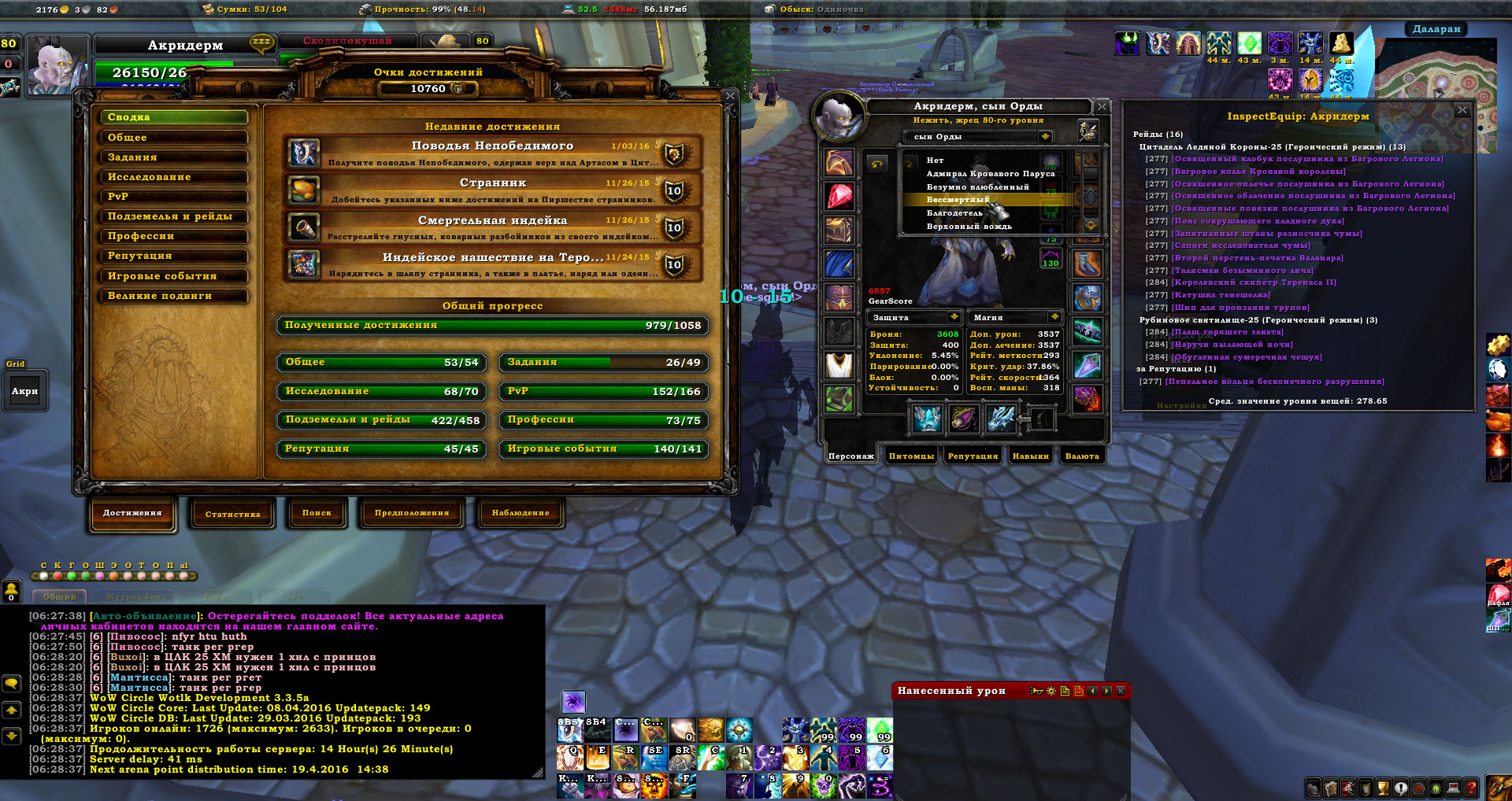 1. Акридерм, орда, нежить, фул бисс ШП пве, фул бисс дц пвп а8 5/5. Холик пве 6.3