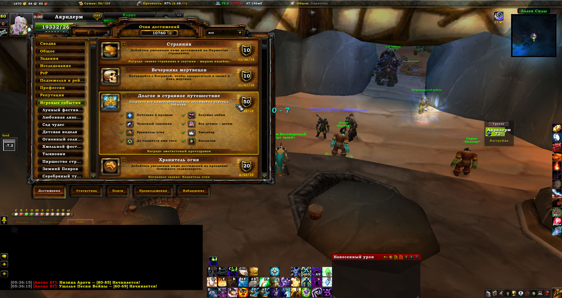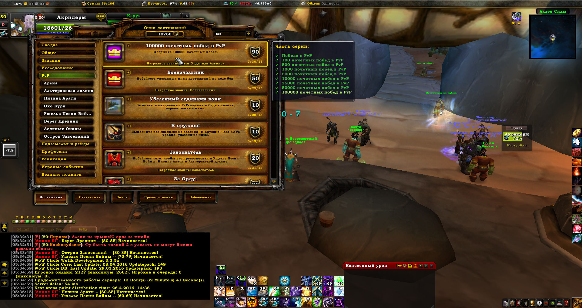4. 10760 ачив!!! 11 страниц маунтов (множество редких). Закрыт весь ЦЛК\РС\ИК. 43 звания.