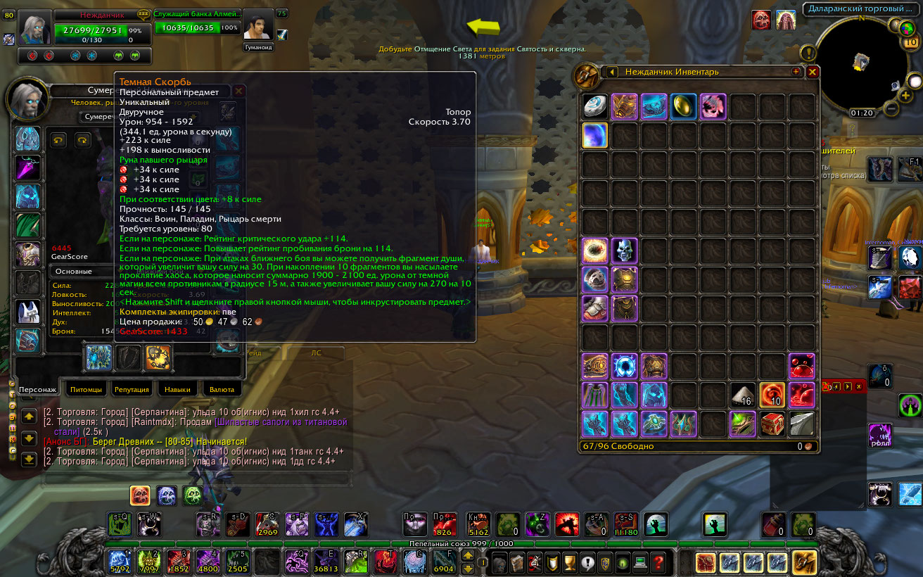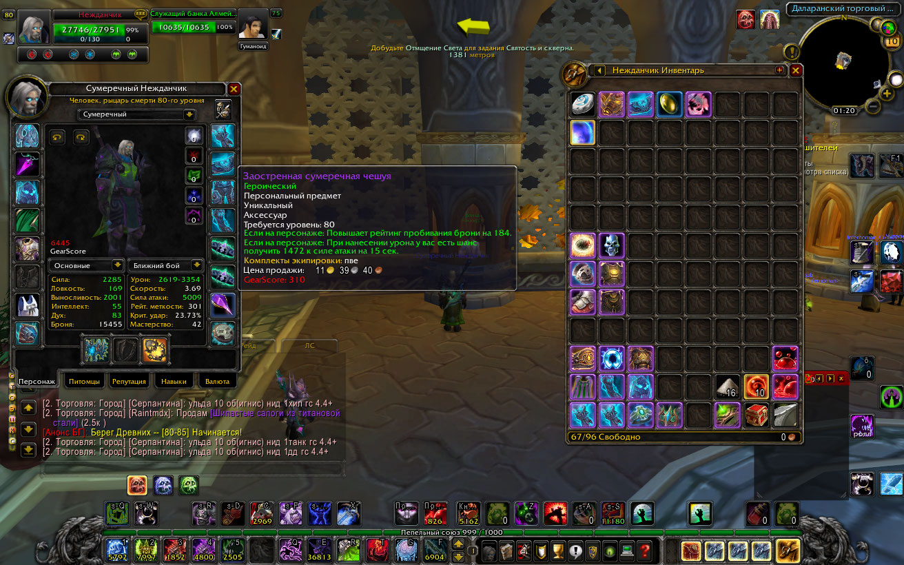 5. Отличный аДК для ПвЕ, Присутствует Шм, воля гер, чешка гер, т10, также можно сделать БДК в дд (есть шмот на арп), в Танке 6.3 гс, профы - юва и портняга почти на фул.