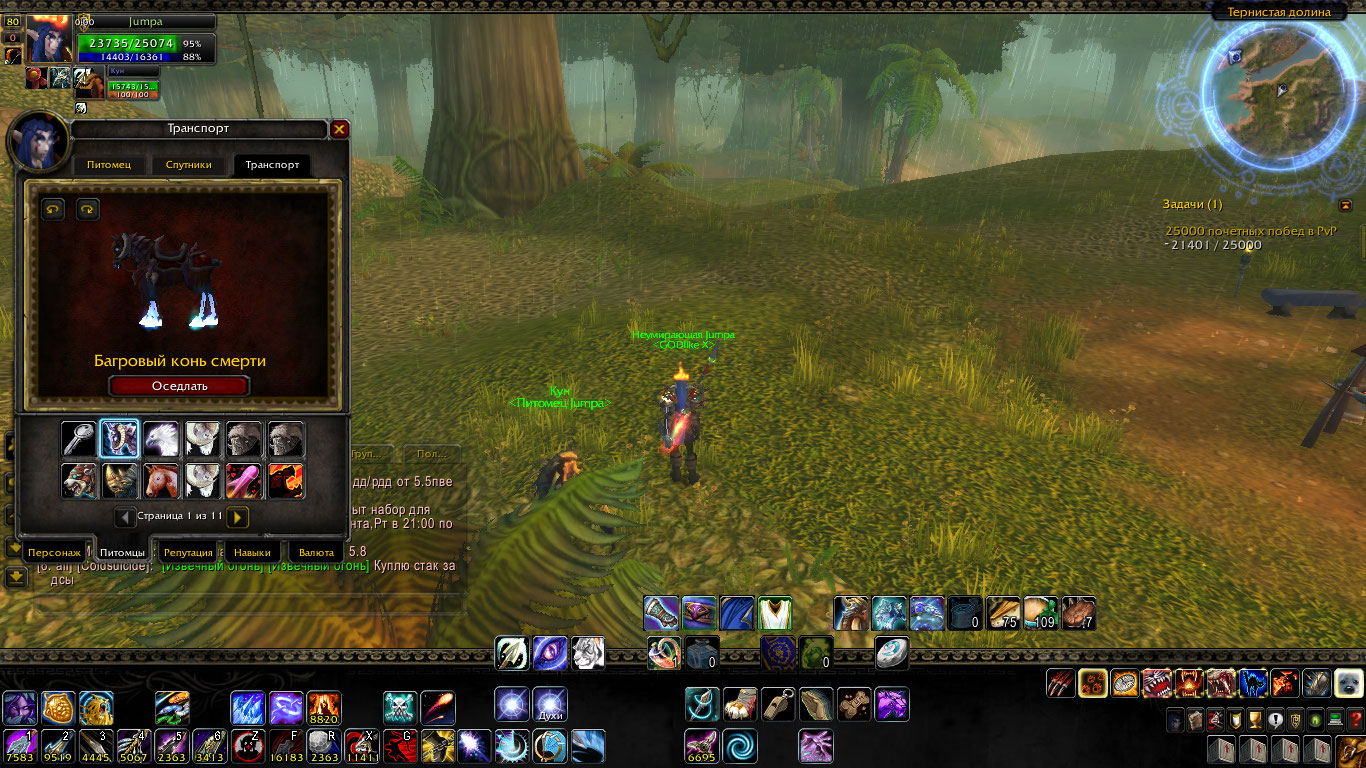 126 ездовых петов(11 страниц ) , 96 обычных( 8 страниц) петомцев ,33 звания , 8к ачив ,92 дня онлайна, 21 к хк , огромное количество трансмута на сеты и оружие. очень много вкусняшек