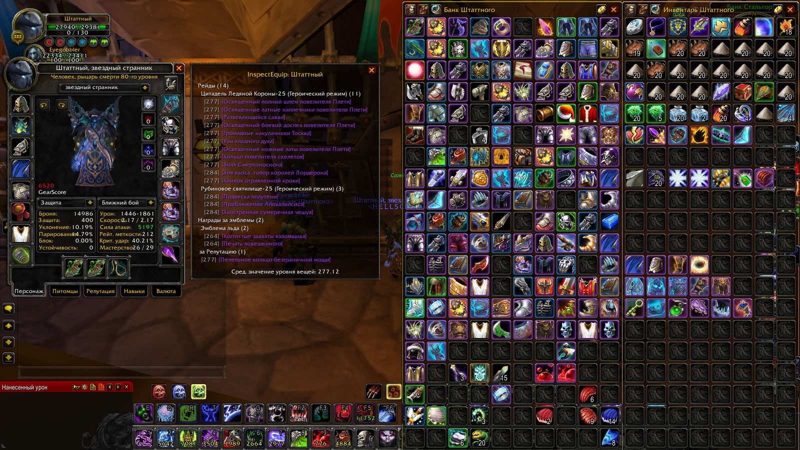1. Штаттный, Альянс Хуман, Анхоли ПВП 6.6(Фул а8) . Анхоли ПВЕ - 6.9 . Фрост ПВП - 6.3(Т2 топоры/мечи) Фрост ПВЕ - 6.5 . Блад - 6.4 ( Ноги и Ступни Обычка ) ВСЁ ОСТАЛЬНОЕ ГЕР . ТОП ТРИНИ, ТОП ПУХИ как ДДшные, так и Танковские .