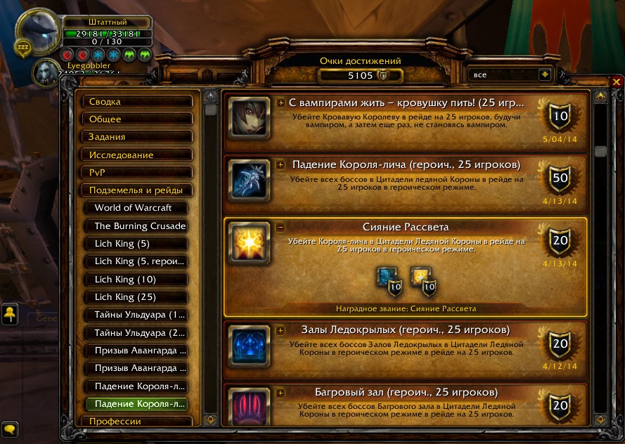 5. Ааааафигительный дикей в котором есть абсолютно всё, что требуется для комфортной игры . БИС в 3 спеках, около 6 сетовых трансмутов, 2 из них донатных трансмута паловских ( С черепами и белый с крыльями ) . Топовые Маунты, такие как : Древний Ледопард(Которого нельзя заполучить в игре, ЕСТЬ АЧИВА) Аманийский Мишка( Аналог, ЕСТЬ АЧИВА ) . Непобедимый, Небесный скакун, Ониксия и прочее . Более 15 званий: Весельчак, Дипломат, Серебряный Защитник, Защитник Ледяных Пустошей, Сияние Рассвета, Звездный Странник и прочее . Все сумки битком забиты ништяками и шмотом, на секундочку СУМКИ ПО 36 ЯЧЕЕК . Покажу в игре, в ЛК ещё нет .