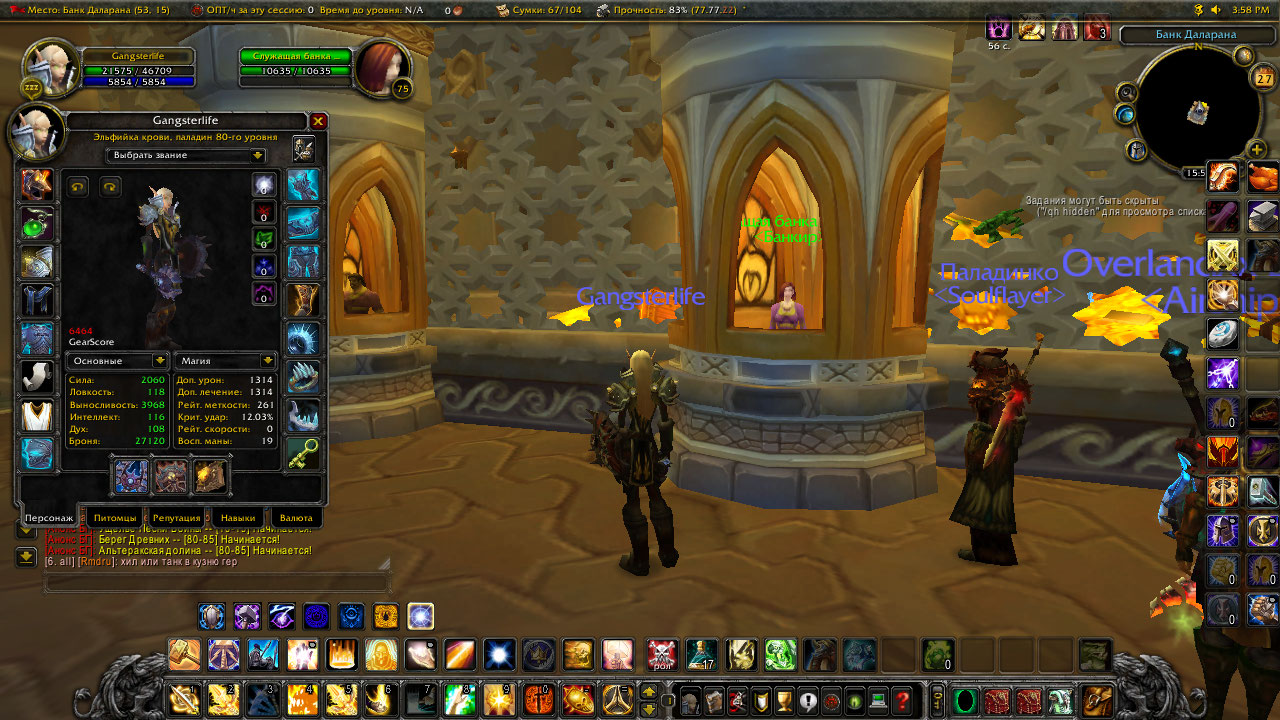 Есть паладин 9320 ачив (небесный донат скакун ) , одет : ретри пвп 6550 , ретри пве 6.6к , прото пве (6012) , прото пвп 6.1 к , холи пве 6,2 , холи пвп 5,7 . могу показать в игре / 9 страниц маунтов , если интересно отпиши покажу что еще есть если что не дописал/747- триумфа /2446 апа/ 549 оскл. хранителя, за 1.3 отдам