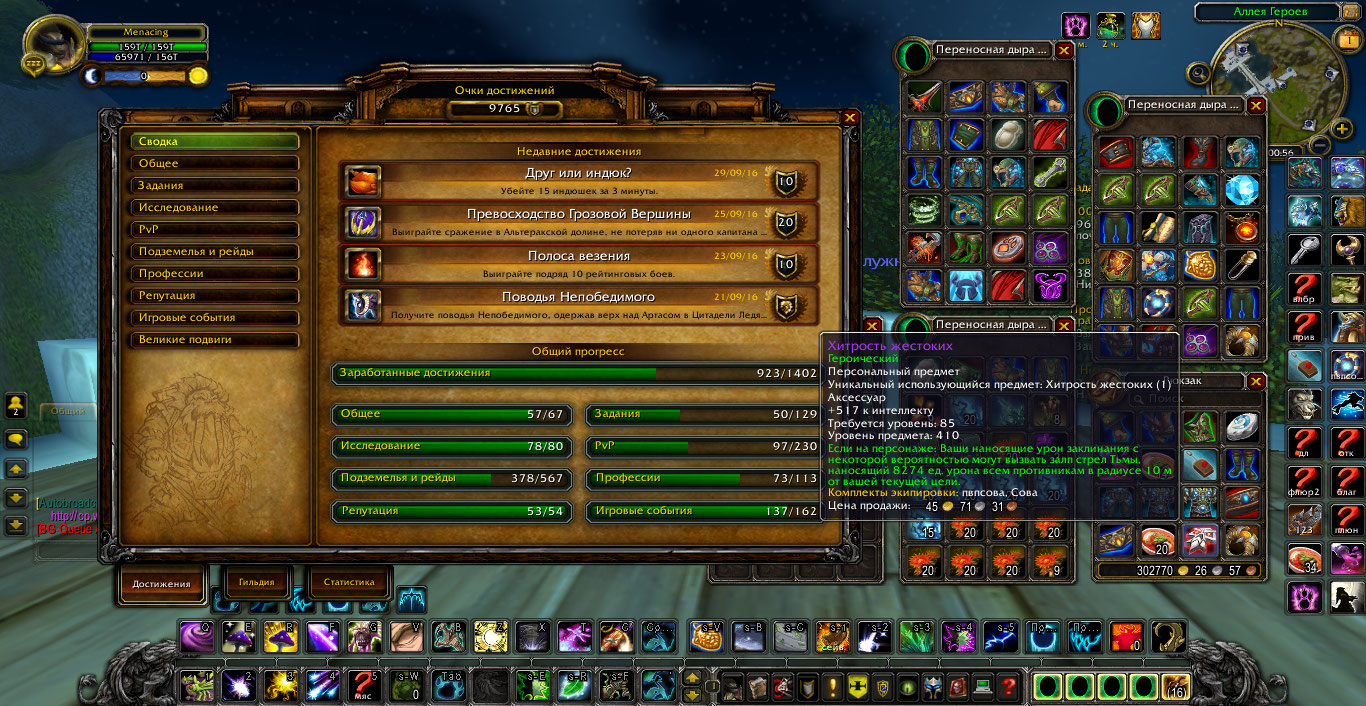 3. 10 к ачив ,более 60 званий ,12 страниц маунтов ,10 страниц спутников !!!