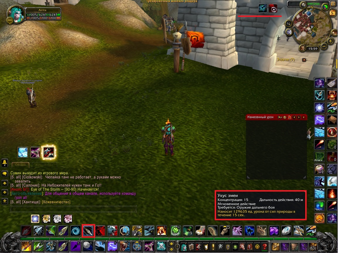 7.1 На скрине №1. Урон от укуса змеи без проков и банок составляет 129635 ед. урона.