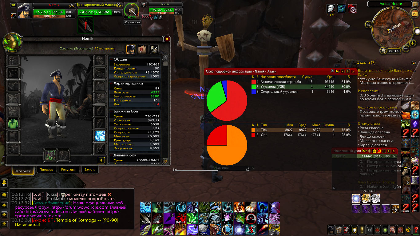 Вывод: На магический урон у охотника в специализации "Выживание" влияет только количество силы атаки , а пассивка Искусность: сущность змеи http://mop.wowroad.info/?spell=76658 , влияния не оказывает.