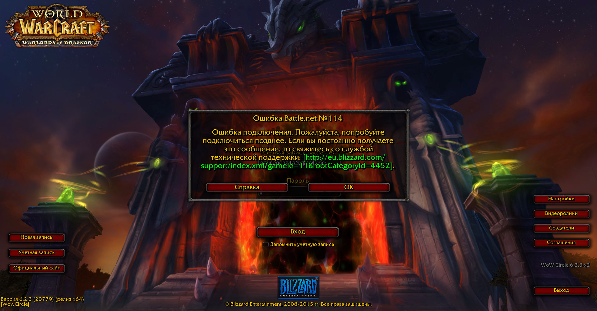 Добрый день, выдает ошибку 114 при входе в игру. Кэш чистил.