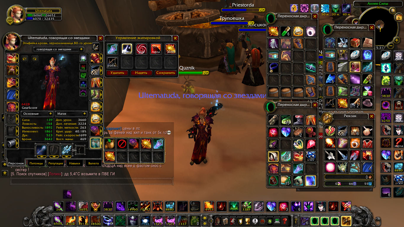 1. Ultematuda - PvE Дестро 6.4, PvE Демон - 6.4, PvP - 6.2. Эльфийка крови, Орда. Есть смена фракции на персонаже!