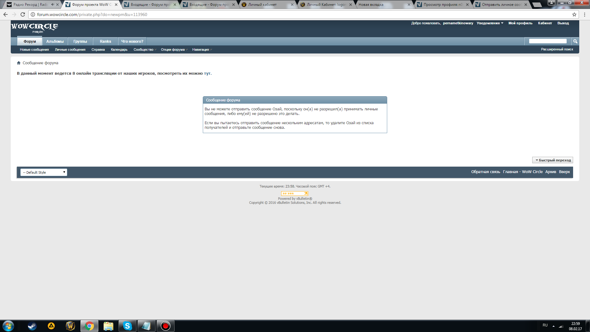 Надеюсь, баны на завтра не придут на все аки от Озая. Зная, его я их врядли обжалую(в первой теме дал мне чс, первый раз решил ему написатьВложение 434180). Я догадываюсь какой будет ответ - ОТКЛОНЕНО. "Сомневаюсь, что это лаги..."(с) Озай, Игровой мастер (3.3.5а Fun logon), ну или что-то вроде этого...