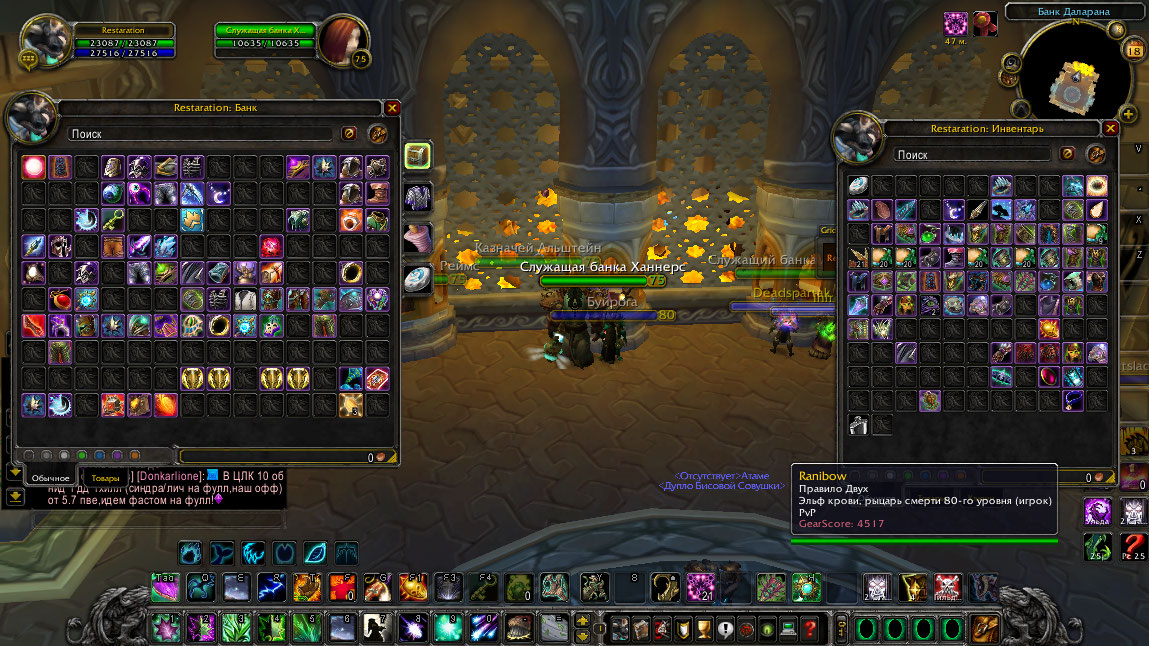 Всем Привет! Вот и дру Подъехал! Ник:Restaration Собран Шмот дфб фул как сова так и рдру!Посланник титанов как сова так и рдру 5К Ачивок! из маунтов Голова мимирона,Призрачный тигр,Непобедимый,Протодрак он в железной броне(Ульда 25 фул ачивы) с цлк фул ачив 25 дракон!