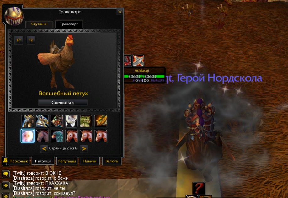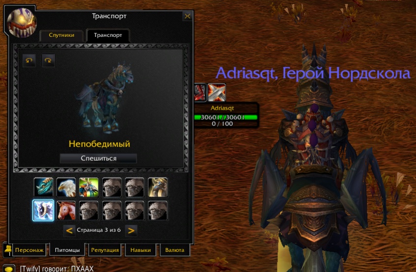 Есть 6 страниц маунтов (Петух, Непобедимый, Мишка Аманийский, Черепаха)
