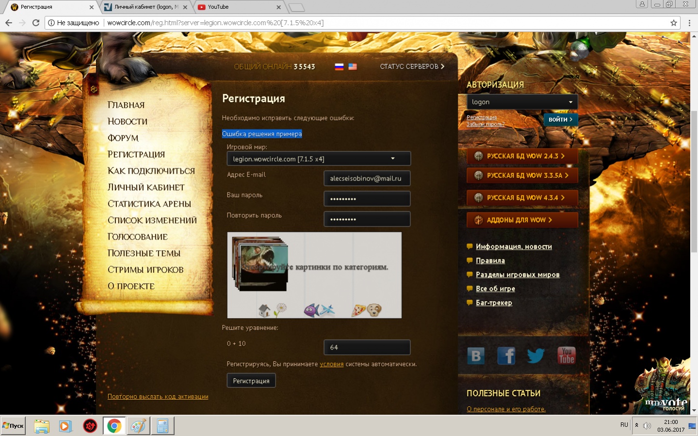Не могу зарегистрировать аккаунт на легионе. После ввода всех данных email и пароля я делаю капчу