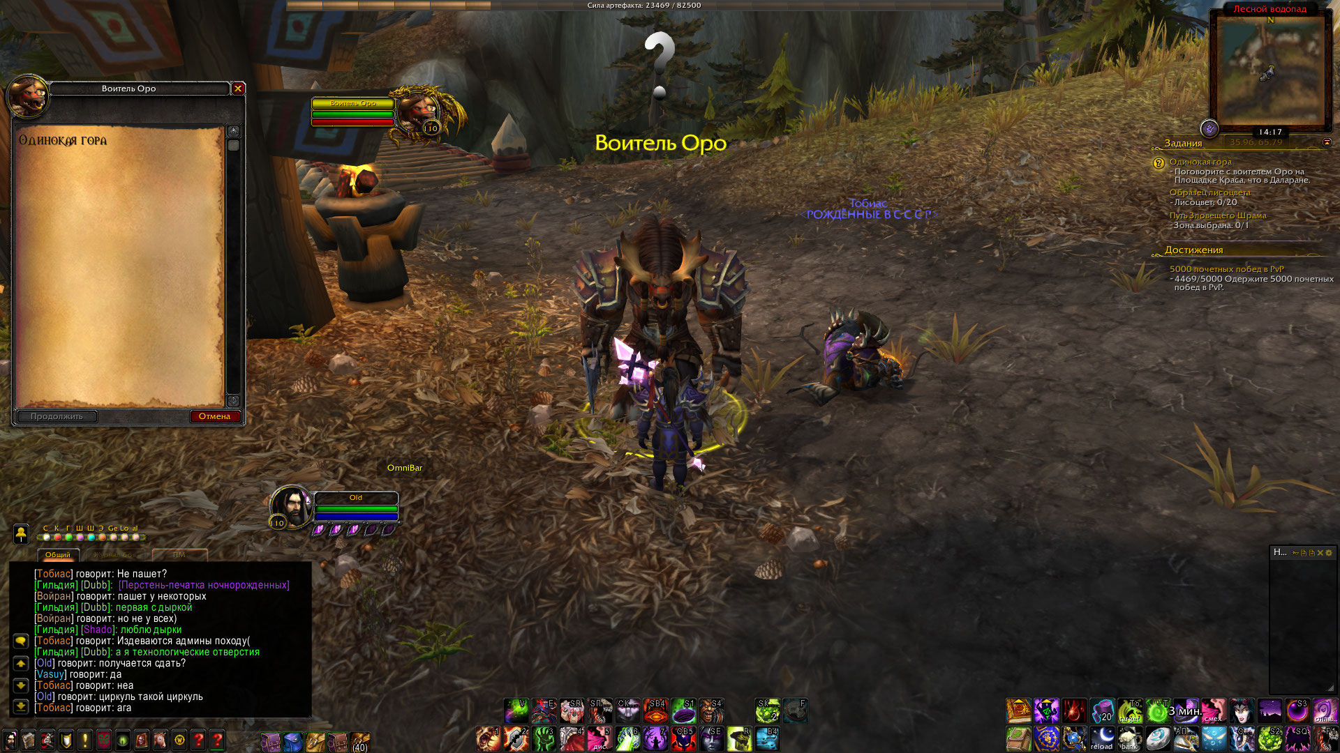 Побежал в саму локацию к 2 фазе (таурен у вышки), но кв ему не сдается, хотя спрашивал у нескольких человек, сказали, что все норм у них. И только сидящий рядом рога подтвердил, что у него тоже не сдается квест.