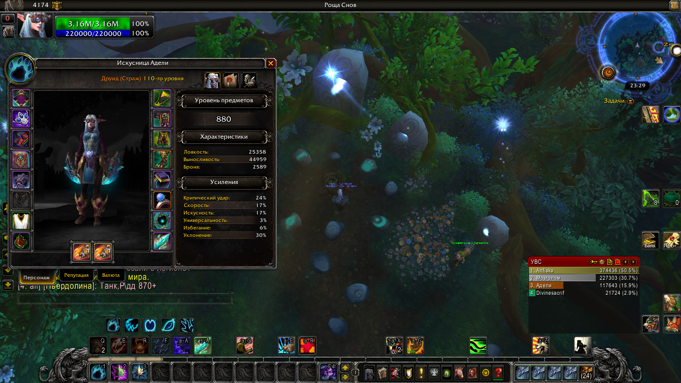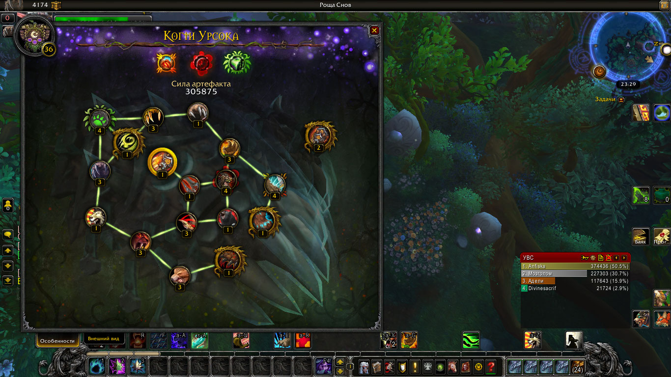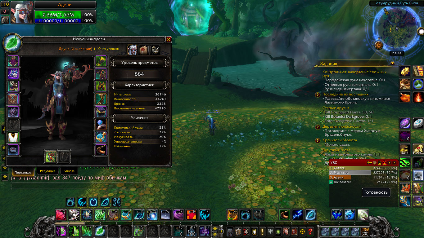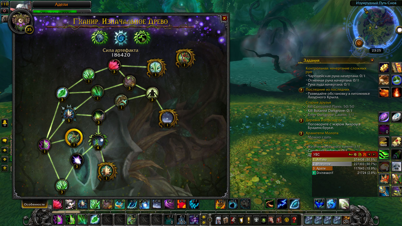 5. 25 знание, 890 артефакты на все спеки, маунты,трансмут и прочие ништяки,2 легендарки надето