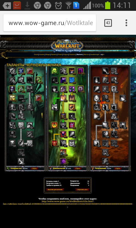 Жизнеспособный спек? Надо символ быстрого разложения и жезнеотвода и поджигаеие. Можно что то попереставлять в талантах. А так бегал со вкаченым камнем чар демонологии