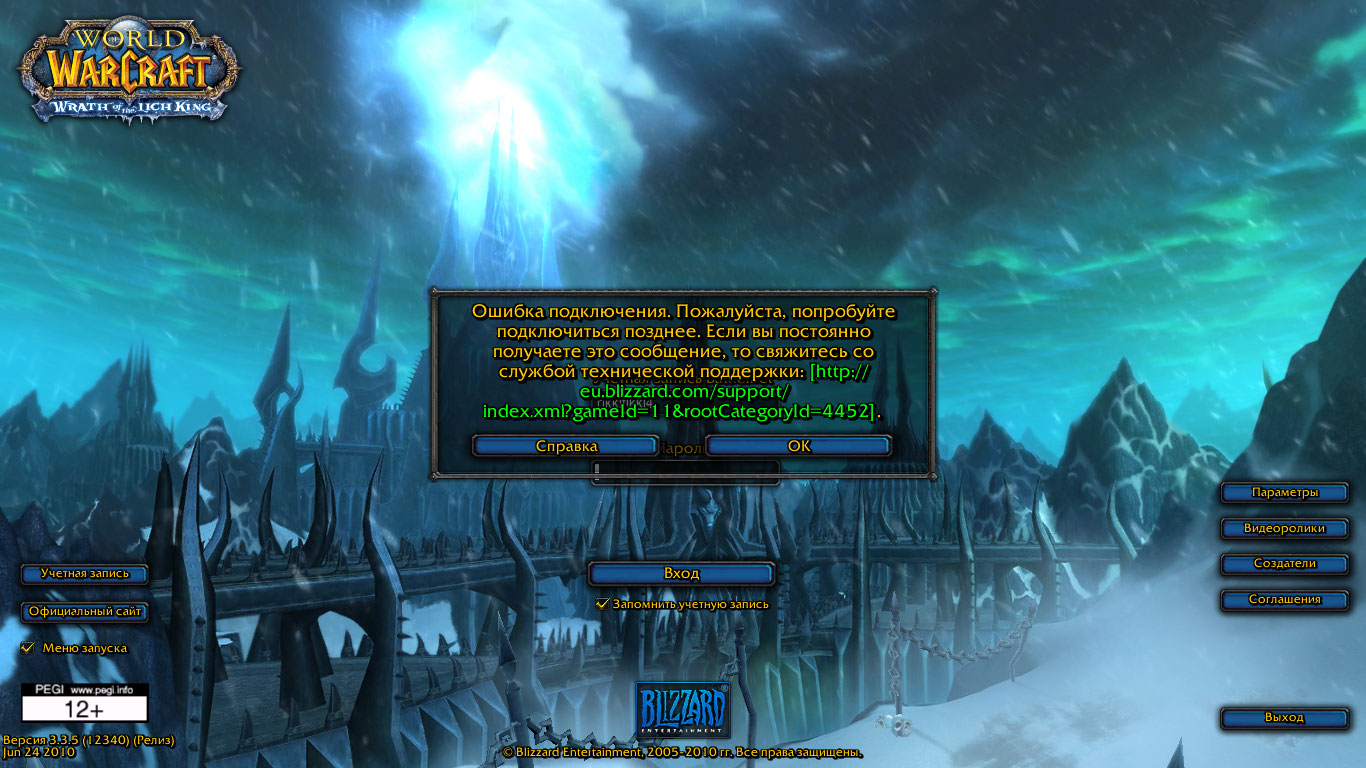 Не могу зайти в вов,на аккаунт вов циркл(не в личный кабинет)