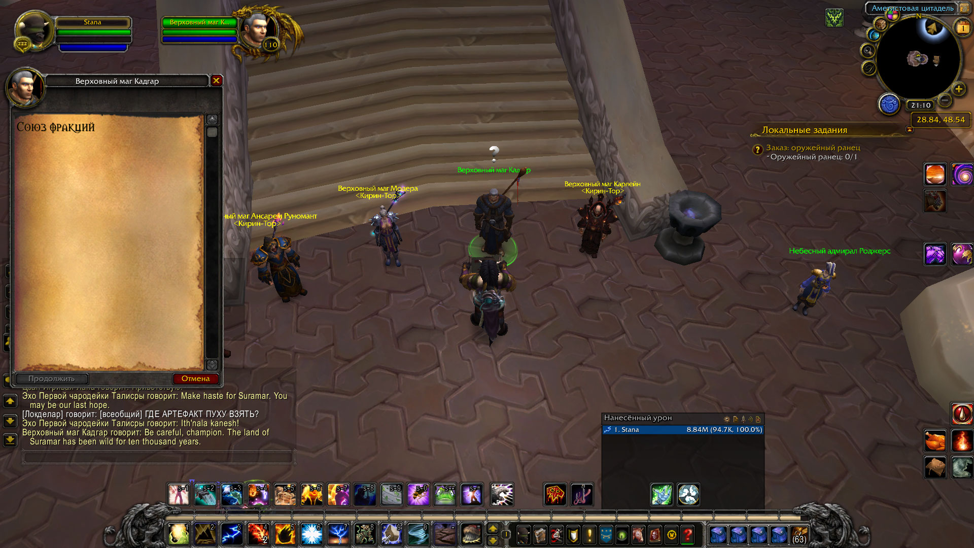 9) http://ru.wowhead.com/npc=90417 Кадгару пробую сдавать, на миникарте светится желтый вопросительный знак, над самим же Кадгаром - серый, при диалоге с ним кнопка Продолжить - неактивна.