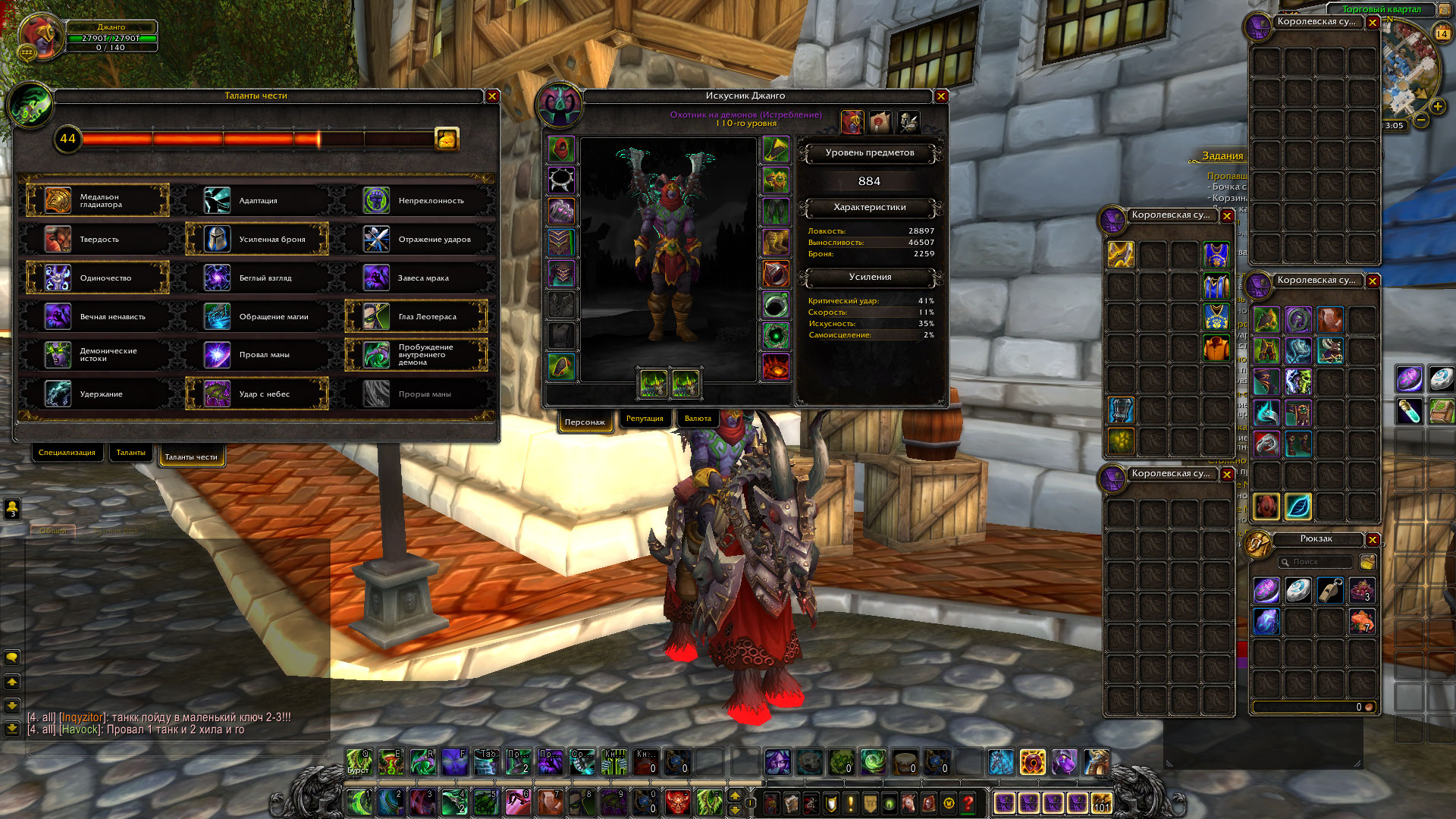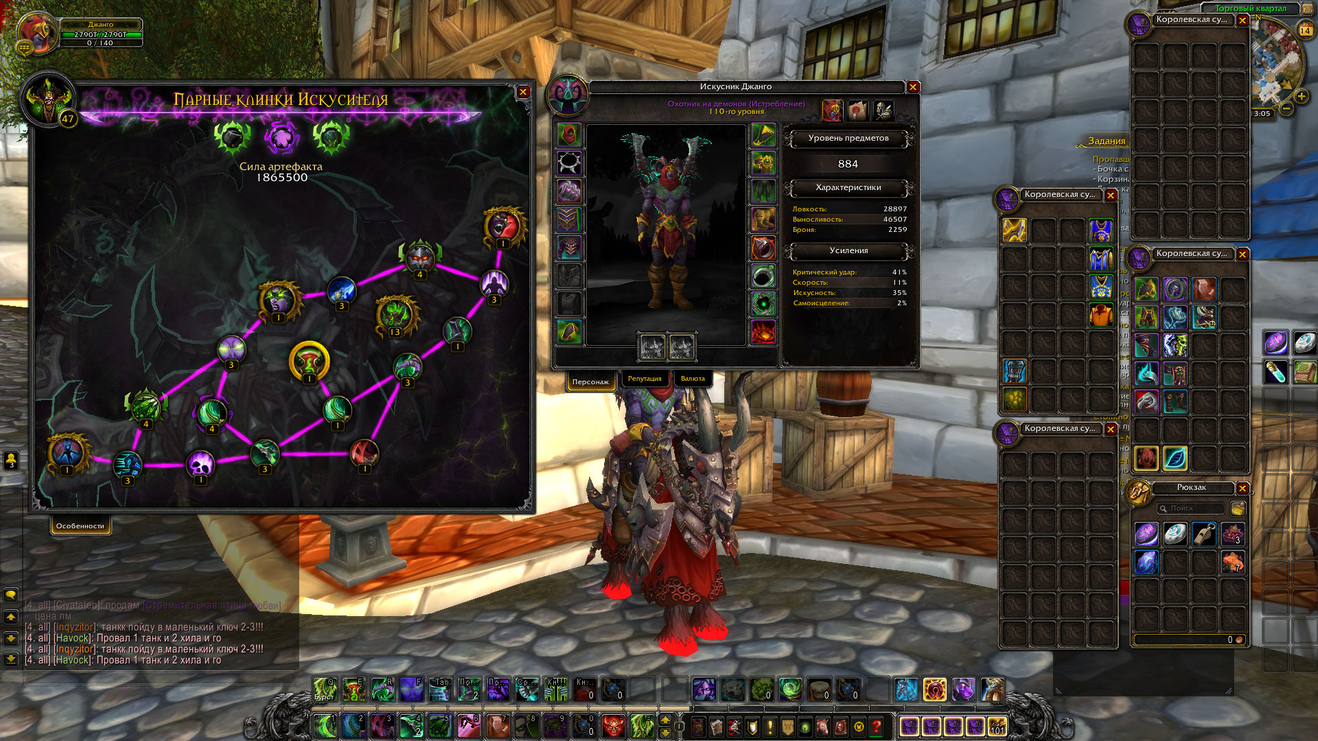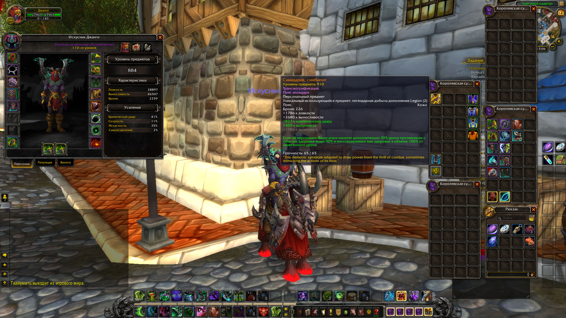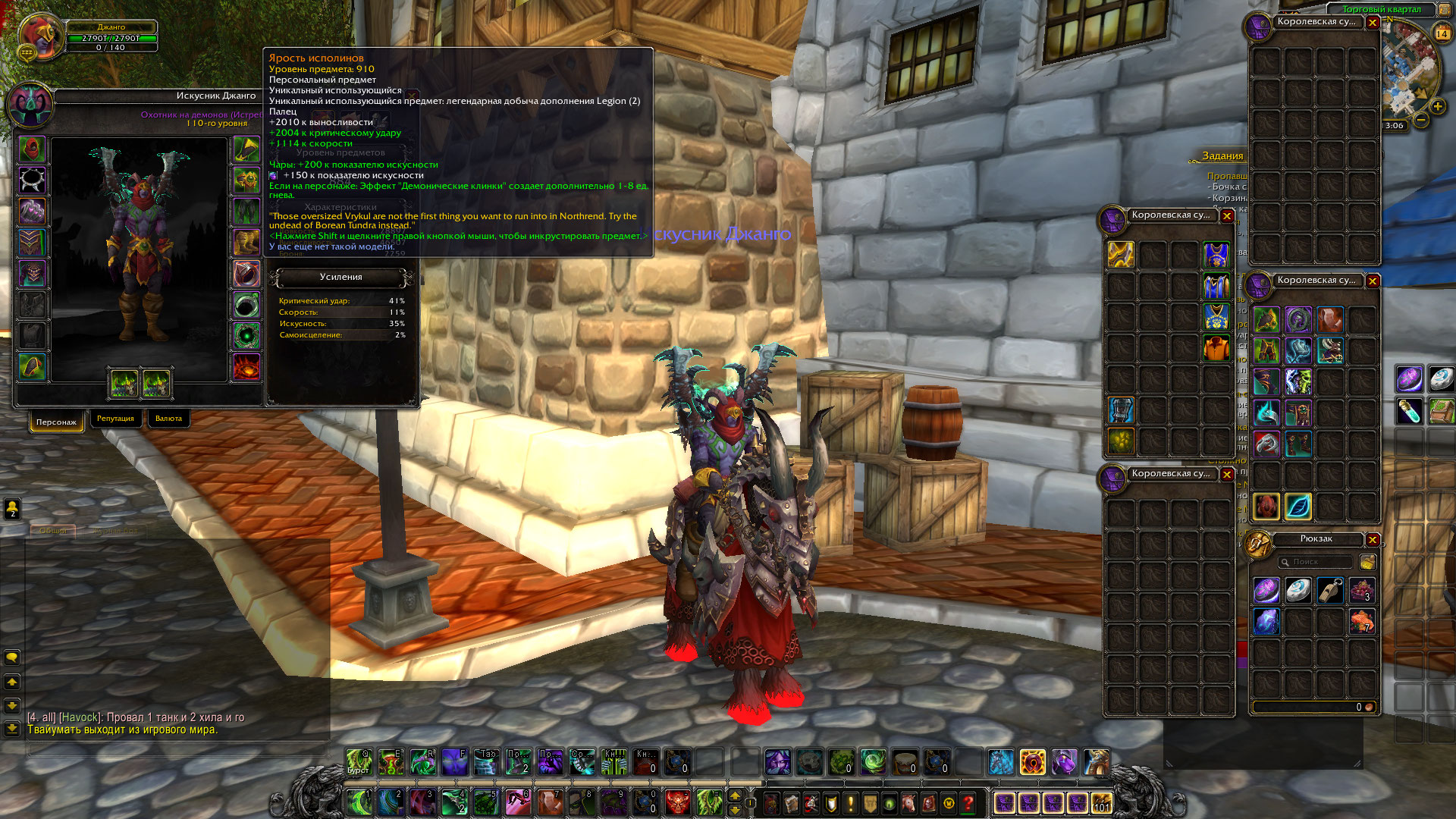 5.Не плохой Дх с 2 топ легоми , плечи и кольцо ! еще 2 леги на фото есть наручи и поес на выбор можете менять по дпс скажу не плохой я держу 650