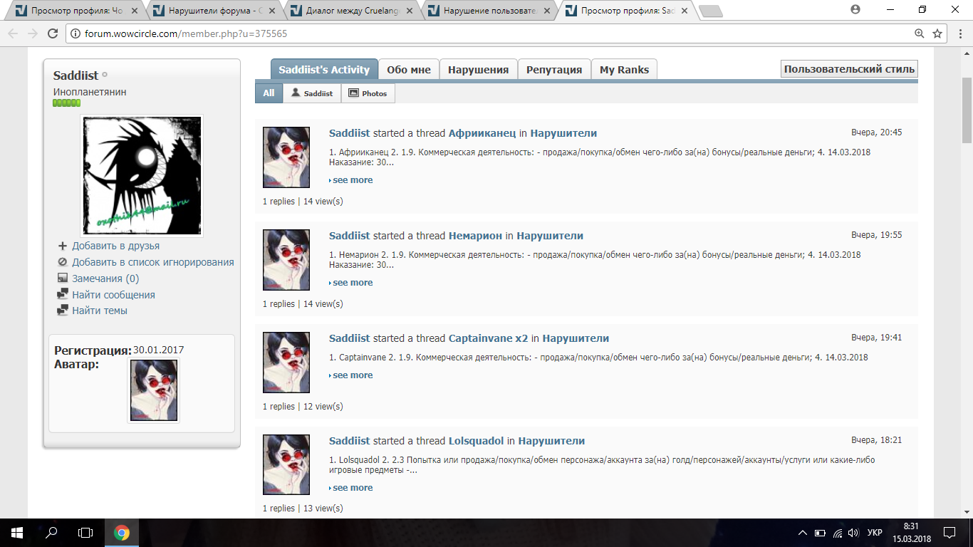 3. Ссылка на страницу нарушителя: http://forum.wowcircle.com/member.php?u=375565