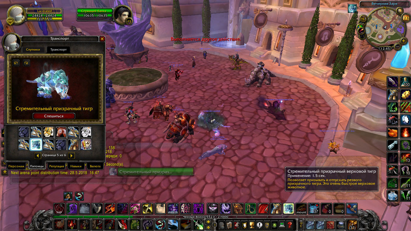 5. Имеется чешка гер, 2/5 а8 (перчи и ноги), остальное а7. Инженерка и ювелирка прокачаны до 450. Есть 3 варианта трансмога: белый сет (который сейчас на персонаже), т2 и т5 (лежат в банке). 4 страницы петов, 6 страниц маунтов (среди них — спектральный тигр, зулианский тигр, анжинерский чоппер, тундровый мамонт путешественника, большой черный боевой мамонт и т.д.) 4к ачивпоинтов. Если нужно, могу всё показать в игре.