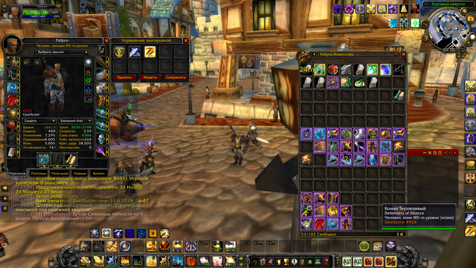 1. Pallpro, Паладин, альясн хуман, 6555 ретрки пве, 6522 пвп ретрик, танк 6160 пве