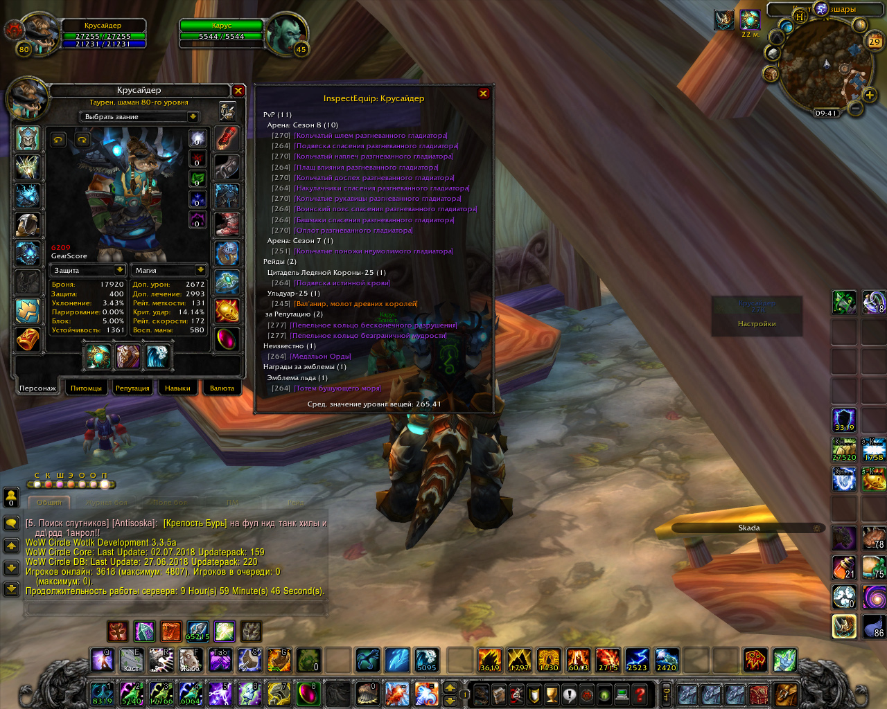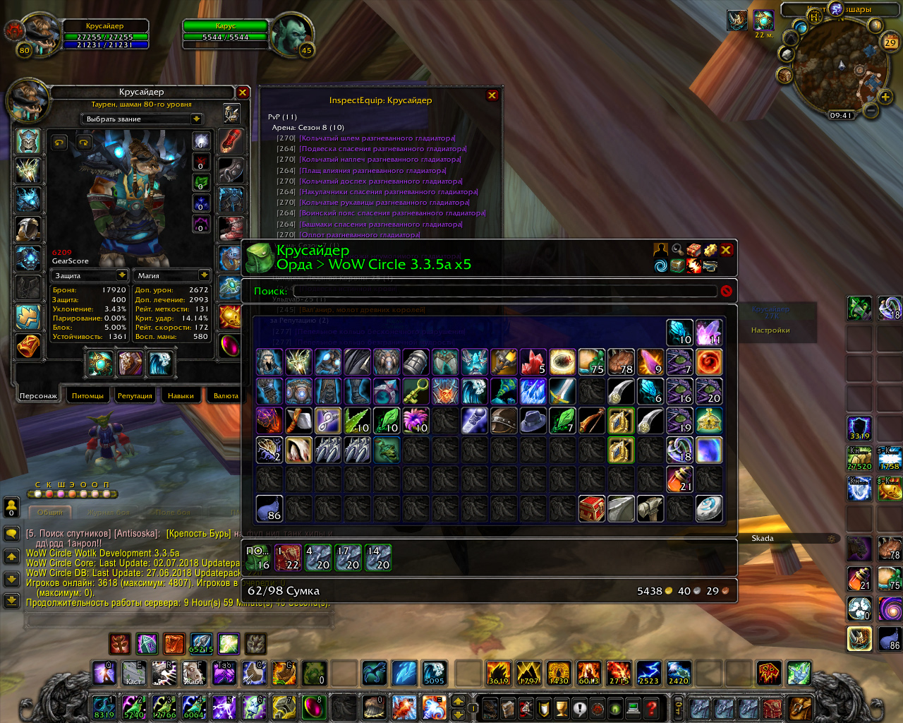 Крусайдер орда таурен ПВП рестор с плечами и валаниром пуха есть и а8,пве рестор 6100 , элем 6100 с топ тринями есть чуток на энха цена 1к+%