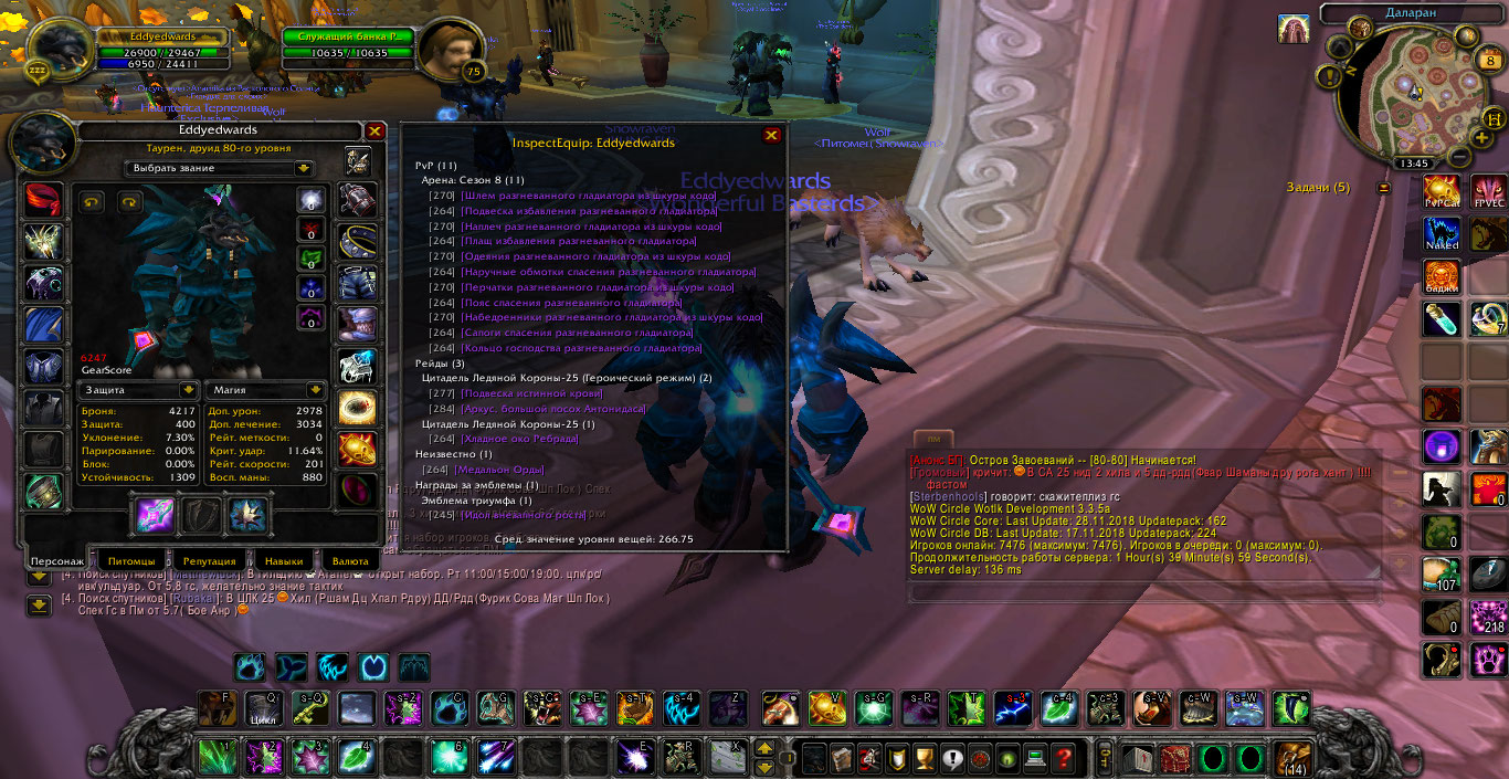 Продам друида, ник eddyedwards. 5\5 a8 кот, бис трини, пуха, 5/5 а8 бревно, акрус, т1. пве кот 6.3 и какой то там шмот на бревно в пве, на ргер пойдет. Все остальное на скринах. Персонаж в лк, предложения по цене в личку.