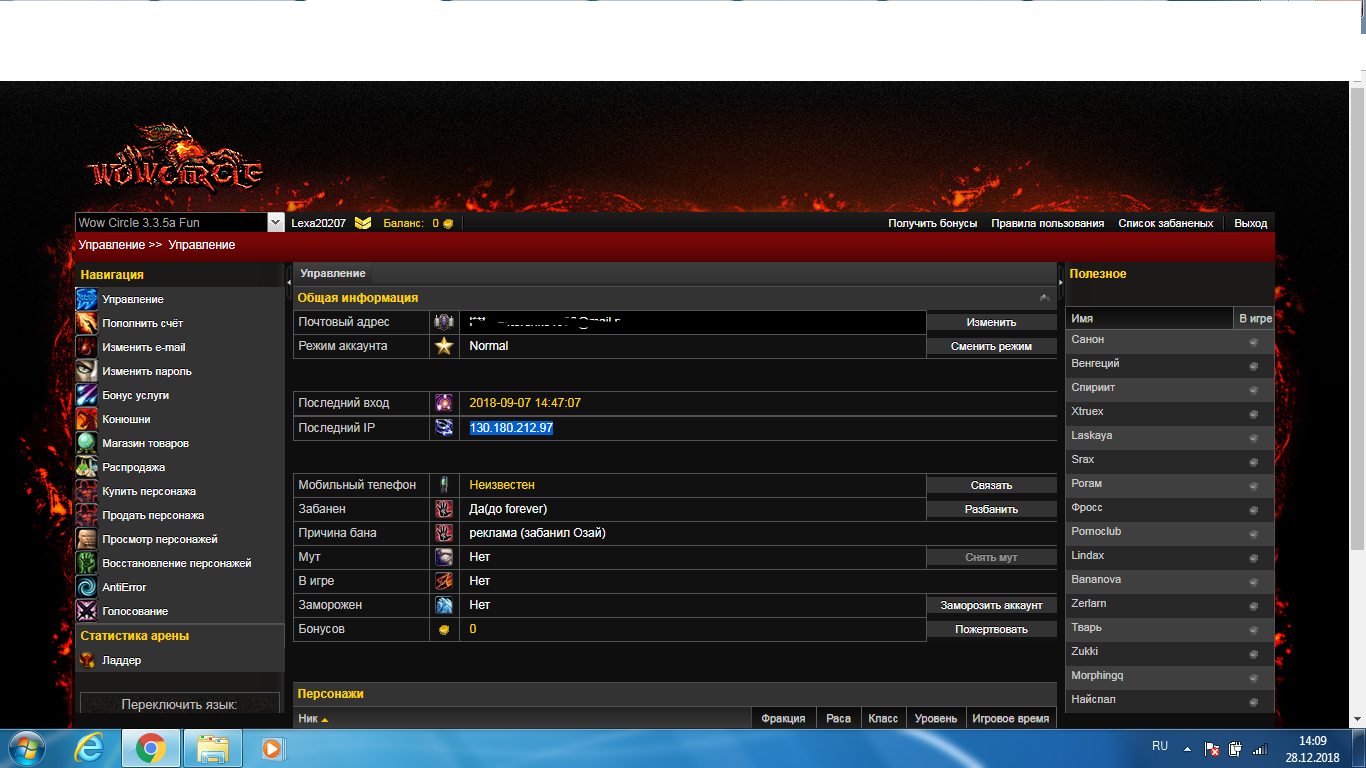 Ваши аргументы и доказательства, доказывающие необоснованность примененной Игровым Мастером санкции в виде бана аккаунта или персонажа. - Ip не схожий с моим, в личном кабинете.