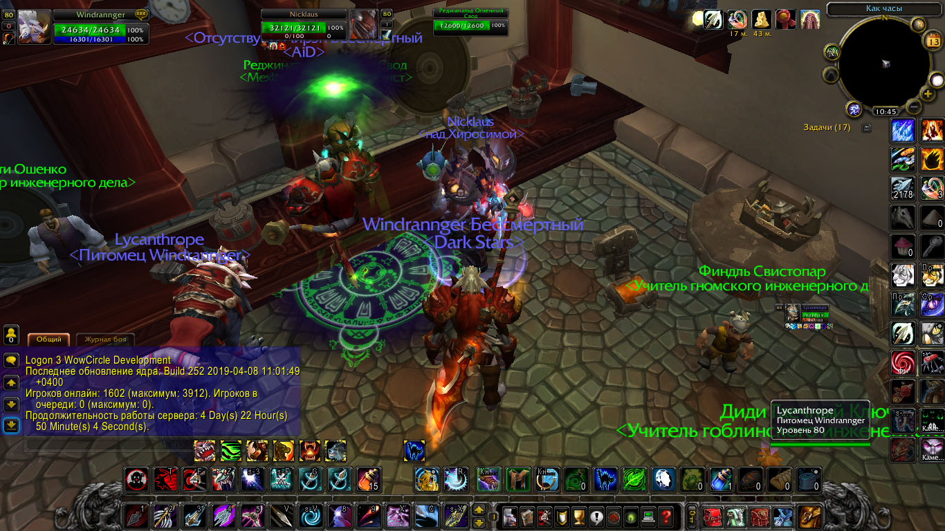 Хочу сообщить о нарушении игрока с ником "Nicklaus". По моему мнению данный игрок использует программу (чит) позволяющий быстро покупать определенные вещи выложенные на аук за ту сумму которую он указал в этой программе и ниже соответственно. К сожалению я на собственной "шкуре" испытал все "плюсы" данной программы, когда решил через аук быстренько перекинуть с одной фракции на другую реагенты. Сначала я выкладывал медные, серебряные, бронзовые, железные и т.п. слитки по 10-20 меди и выкупал их через 2 окно предварительное вписав в строке поиск название реагента который собирался выложить (я понимал что надо максимально быстро перекупить). Затем дело дошло до титановых слитков я выложил 14 за 22 меди и вторым окном быстренько хотел выкупить их, но они уже были выкуплены. Сначала я подумал, что это совпадение и сам виноват.... Но после того как я выложил 8 ледяных шара и они так же за секунды были выкуплены этим же игроком, я понял что дело тут не чистое. Решил написать ему в пм, но как ни старался там всегда тишина. По геолокации посмотрел его местонахождения, это оказался Даларан (к слово сказать он стоит там и по сей день, час, минуту, секунду). Рассказал свою историю знакомым, на что они были не удивлены, сказав -Ха, да не удивительно, он там по кд стоит. Решил написать ГМу через запрос в игре, но он так же оказался бессильным мне помочь. Но остерёг, что если я буду такой программой пользоваться, то получу бан. Так вот Уважаемая администрация проекта WOW Circle, помогите разобраться с данной ситуацией. Её легко может проверить ГМ, т.к. этот игрок стоит 24/7 в одном месте не сдвигаясь, не уходя в АФК.
