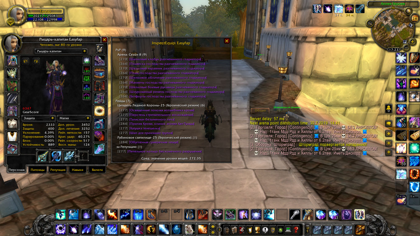 1.Easyfap/маг/альянс/6.5 пве(аркан,фаер),фул а8(нон сеты на хаст и крит полностью)