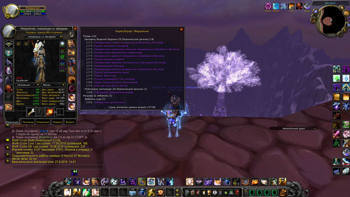 д)Ачива 5к,хк 18к, профы инжа и портняга 450/450,есть много трансмута на пухи,4 сета на шмотки..