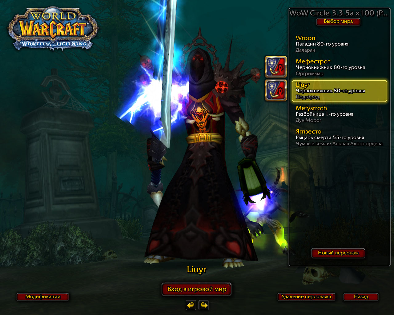 1.Ник-Liuyr. Класс-чернокнижник. Фракция-Орда. Спек-дестракшен